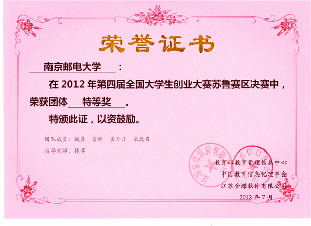 2012.6“金蝶杯”2012年第四届全国大学生创业大赛苏鲁赛区决赛特等奖