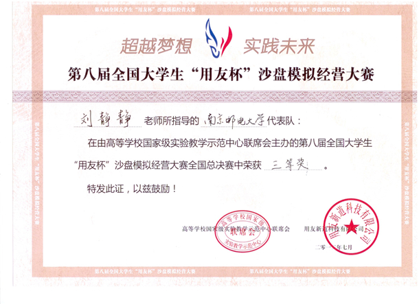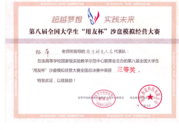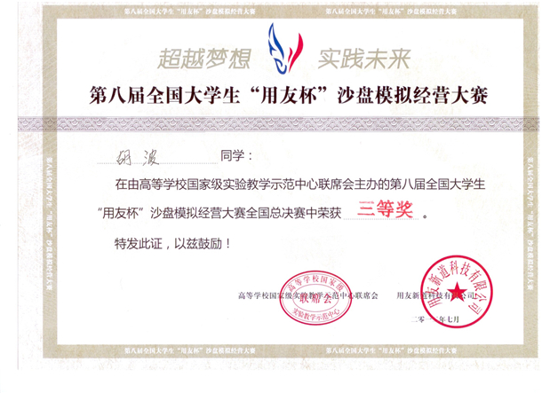 2012.7第八届全国大学生“用友杯”沙盘模拟经营大赛全国总决赛三等奖